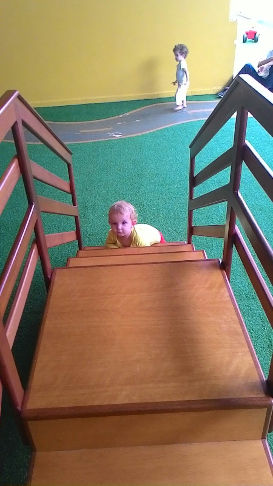 Na sala Materna, os degraus são largos e possuem uma altura de cerca de 10 cm parecendo mais um palco do que uma escada. Mais tarde o desafio aumenta com degraus com altura maior e largura menor.
